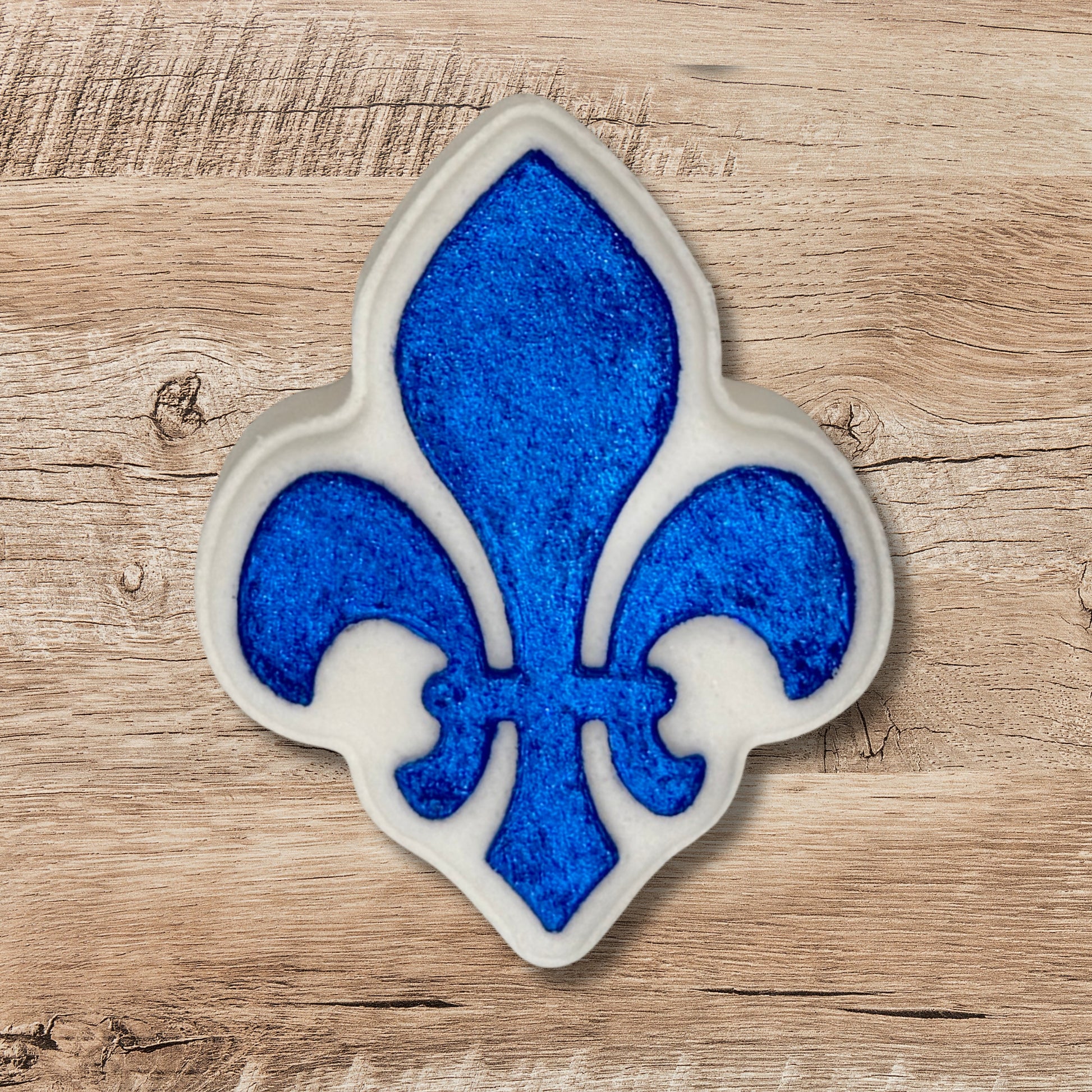 Plongez dans un bain aux couleurs de notre belle province avec cette bombe de bain fabriquée et décorée à la main. Inspirée de la fleur de lys, symbole fort du Québec, elle apporte une touche de fierté et d’élégance à votre moment détente.